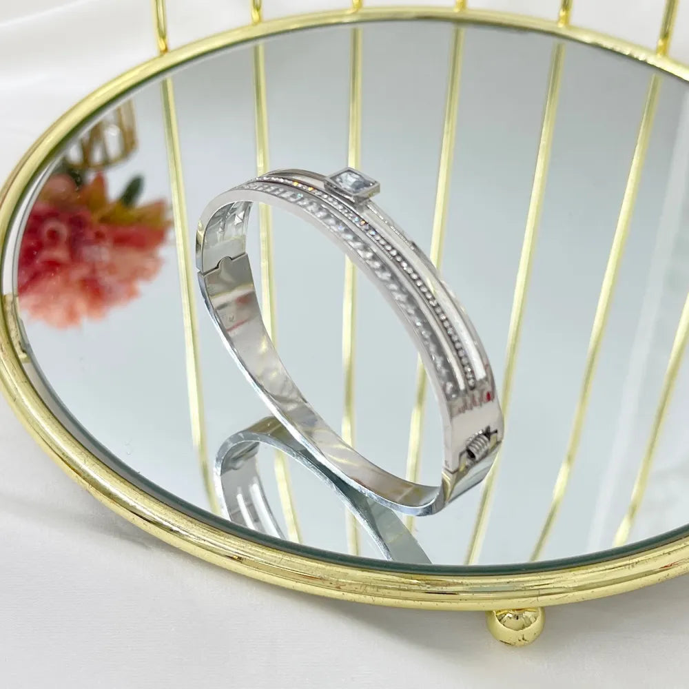 BAR-413-1618A Semplice con Quadrato-Bracciale Rigido in Acciaio BAR-413-1618A Semplice con Quadrato-Bracciale Rigido in Acciaio