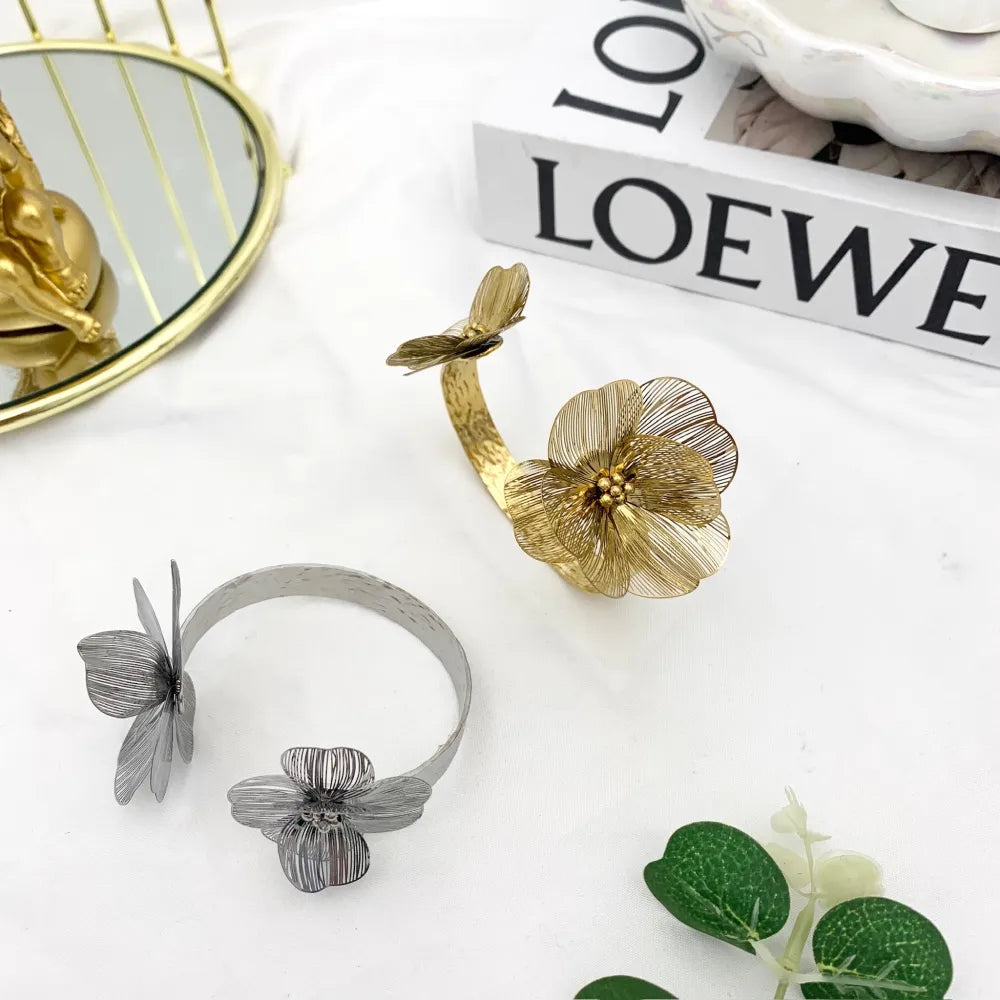 BAR-732-197 Doppio Fiore-Bracciale Rigido in Acciaio BAR-732-197 Doppio Fiore-Bracciale Rigido in Acciaio