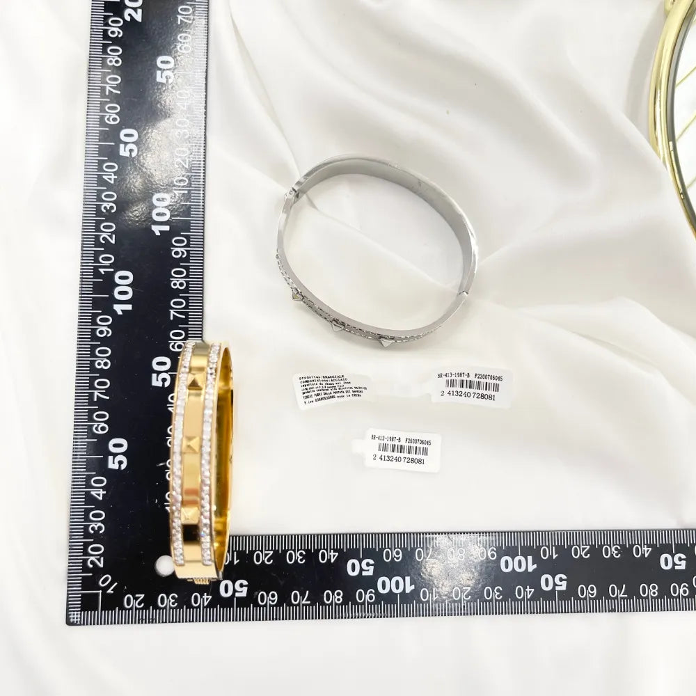 BAR-413-1987-B Strass e Borchie-Bracciale Rigido in Acciaio BAR-413-1987-B Strass e Borchie-Bracciale Rigido in Acciaio